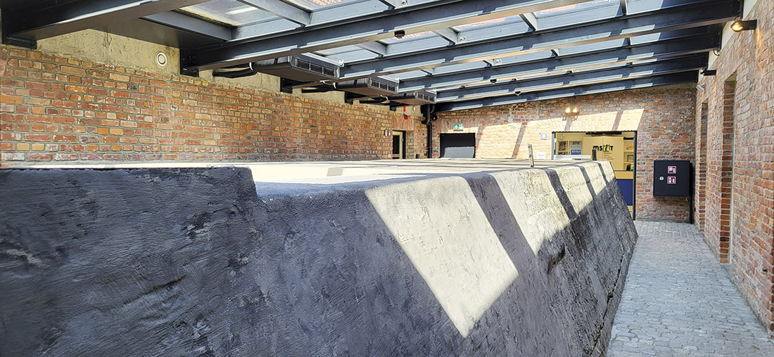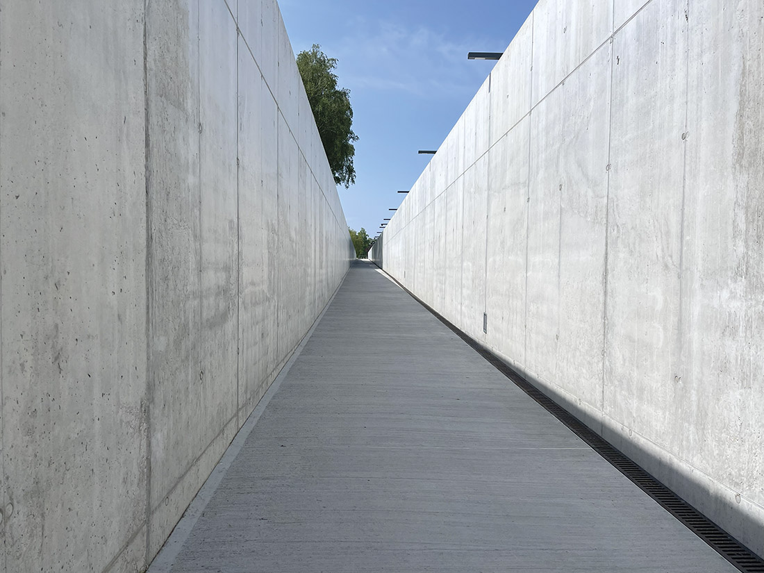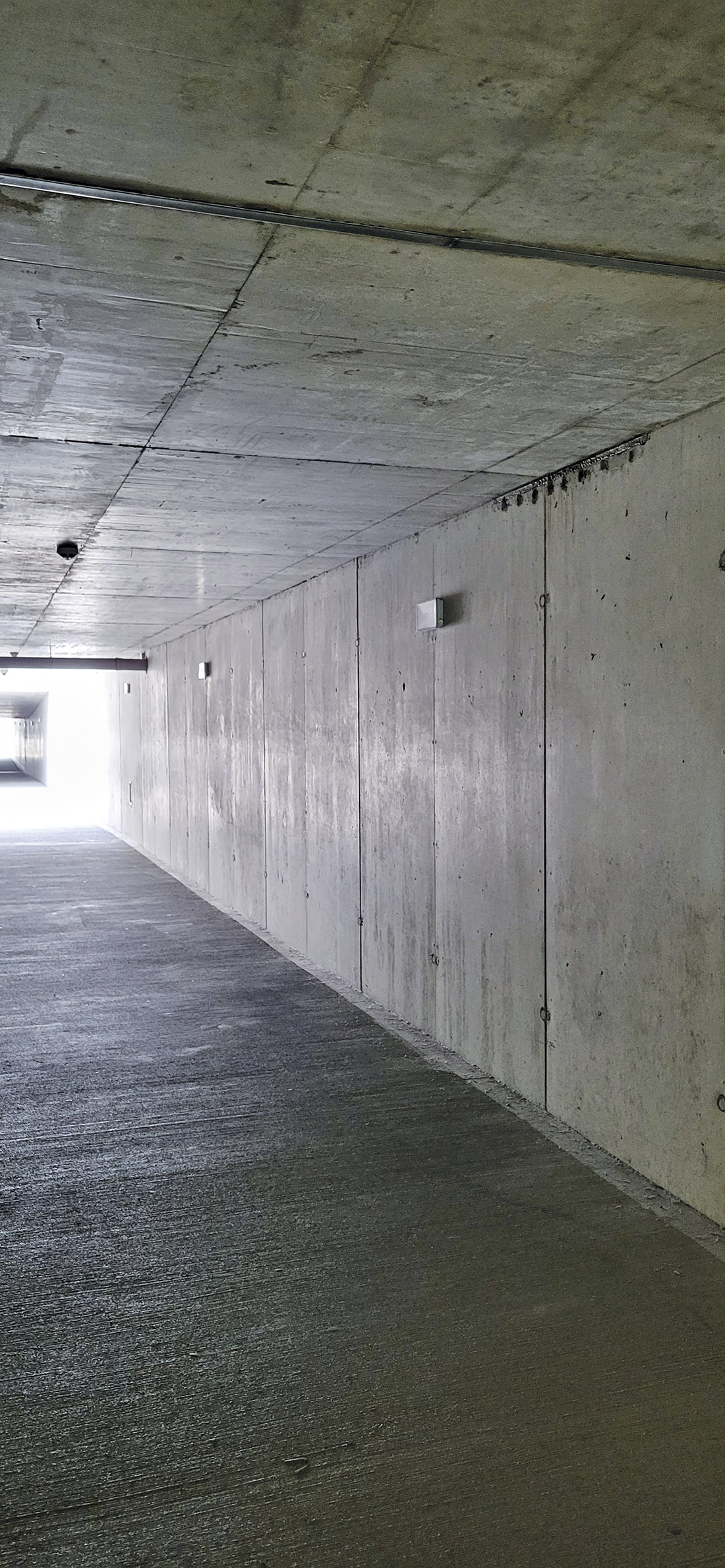 Plac przy wyjściu z tunelu został ukształtowany przez potężne betonowe ściany