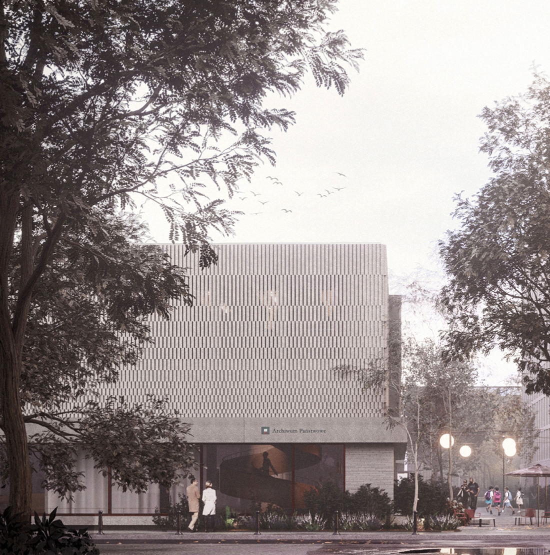 Inż. Bartłomiej Głomski z Wydziału Architektury Politechniki Warszawskiej otrzymał nagrodę za pracę „Rozbudowa Archiwum Państwowego na warszawskiej Ochocie o pawilon edukacyjny z zapleczem do archiwistyki społecznej” (promotor: prof. dr hab. inż. arch. Jan Słyk). W Polsce wiele publicznych instytucji zajmujących się archiwizowaniem dokumentów, kolekcjonowaniem dzieł sztuki czy udostępnianiem książek funkcjonuje do dziś według reguł wypracowanych w czasach, w których celem było przede wszystkim chronienie gromadzonych dóbr kultury, a więc niedopuszczanie do tajemnic instytucji przeciętnego śmiertelnika. Odwiedzający muzea, korzystający z dużych publicznych bibliotek czy różnego rodzaju archiwów, niejednokrotnie mogą poczuć się w nich jak intruzi albo niechciani goście. Jest to skutek zbyt rozbudowanych biurokratycznych procedur dostępu albo nieprzyjemnej, nieprofesjonalnej obsługi. Sama architektura tego typu obiektów odpowiadała przede wszystkim na potrzebę zamknięcia cennych artefaktów w niedostępnym skarbcu. Jednak zmiana priorytetów w archiwistyce czy muzealnictwie odbywa się, chociaż powoli, pod wpływem idei i rozwiązań płynących z Zachodu. Można tam obserwować proces otwierania się instytucji na obywateli. Procedury korzystania ze zbiorów są maksymalnie uproszczone i komfortowe, przy zachowaniu wymogów kontroli i bezpieczeństwa. Jest to proces zachodzący nie tylko w mentalności pracowników – materialnym przejawem tej zmiany jest architektura. Autor nagrodzonej pracy zainteresował się archiwami i archiwistyką, pracując w ramach wymiany studenckiej w jednym z zachodnich biur architektonicznych. – Zainteresował mnie przygotowywany w pracowni projekt budynku, który był wysoko zautomatyzowanym magazynem, a mimo to nie był pudełkiem zamkniętym dla publiki. Do tego z pozoru zamkniętego budynku architekci starali się wprowadzić wiele elementów, które pozwalały ludziom z zewnątrz wejść do środka i zajrzeć do tych procesów – mówi Bartłomiej Głomski. Podróżując po Europie, autor zwrócił uwagę na budynki archiwów, w których bezpośredni kontakt z materiałem historycznym był bardzo łatwy, przy jednoczesnym wykorzystaniu nowoczesnych form monitorowania i zabezpieczania zbiorów. Jako przykład podaje otwarte i przyjazne archiwum miejskie w Amsterdamie albo nowe archiwum w Kolonii. Funkcjonowanie tych instytucji niekiedy kontrastuje z funkcjonowaniem podobnych placówek w Polsce. – Jest to tym ważniejsze, że nasza historia spaja nas jako naród, a kontakt z nią mamy w pewien sposób utrudniony – mówi architekt. Tematem pracy inżynierskiej uczynił rozbudowę budynku Archiwum Akt Nowych w Warszawie. Istniejące archiwum zostało zaprojektowane przez Bohdana Pniewskiego jeszcze w latach pięćdziesiątych i jest przykładem ewolucji stylu jednego z najbardziej wyrazistych polskich architektów pierwszej połowy XX wieku. Ten monumentalny gmach jest – przede wszystkim – świadkiem wielkich i burzliwych przemian w polskiej architekturze, jakie miały miejsce wraz z odchodzeniem od doktryny stalinowskiego socrealizmu. Projektowany był jeszcze w duchu zdobnej ornamentyki, ale budowany już w okresie politycznej odwilży. Pierwotny projekt został przez Pniewskiego gruntownie przekształcony w duchu nowoczesności, a bogata dekoracja odrzucona na rzecz czystej racjonalności, a nawet awangardy. Projekt rozbudowy archiwum przygotowany przez Bartłomieja Głomskiego jest niskim pawilonem, który stoi za wielkim budynkiem magazynowym Archiwum Akt Nowych. Jak mówi architekt, połączenie z istniejącym kompleksem musiało być delikatne i wrażliwe, dlatego pawilon jedynie uzupełnia oś urbanistyczną o element, który skalą „kłania się” przed budynkiem magazynu jako dominantą przestrzenną. Ze względów konserwatorskich wyraźne połączenie pawilonu z magazynem (a więc ingerencja w jego strukturę budowlaną) było niemożliwe, dlatego obiekty zostały połączone podziemnym łącznikiem. Budynek Bohdana Pniewskiego składa się z dwóch bardzo wyraźnie wyodrębnionych części: niskiej rotundy zbudowanej na planie koła (w niej są udostępniane zbiory) i wysokiego, zamkniętego bloku magazynowego zbudowanego na planie prostokąta. W projekcie inż. Głomskiego można znaleźć subtelne odniesienia do istniejącego archiwum. Betonowe prefabrykaty na elewacji pawilonu nawiązują do tynkarskiego opracowania wnętrz rotundy. Jest to swoisty hołd dla detalu, którego Pniewski był mistrzem. – Był on mistrzem kamienia, ale współcześnie kamień jest drogi i luksusowy. Przy obecnych możliwościach betonów architektonicznych jesteśmy w stanie utworzyć szlachetną powierzchnię, która będzie dobrze się starzeć, a więc nawiązywać do tego, o czym jest budynek – że skrywa on skarby naszego dziedzictwa – tłumaczy architekt. W zamyśle projektanta pawilon na pewno nie będzie kolejną „ikoną” architektury. Przeciwnie. Stonowany, architektonicznie wyciszony, byłby elementem wprowadzającym ład w nieuporządkowane otoczenie, na które składają się socmodernistyczne osiedle mieszkaniowe, mało wartościowe hale targowe z lat osiemdziesiątych czy budynki kampusu Warszawskiego Uniwersytetu Medycznego. – Działka jest w posiadaniu archiwów, więc istnieje możliwość rozbudowy. Mój projekt byłby interwencją, która otwiera archiwum w kierunku kampusu WUM-u, a więc tę część Ochoty, która najbardziej dynamicznie się rozwija – mówi autor koncepcji. Z uwagi na chaos urbanistyczny i architektoniczny panujący w okolicy architekt zdecydował, że interwencja powinna być bardzo stonowana. W projekcie odniósł się nawet do całkiem prozaicznych elementów najbliższego otoczenia. Idąc tym tropem, w strefie cokołowej pawilonu, pomiędzy przeszkleniami, pojawia się szara cegła cementowa. – Jest to nawiązanie do garaży ciągnących się pr