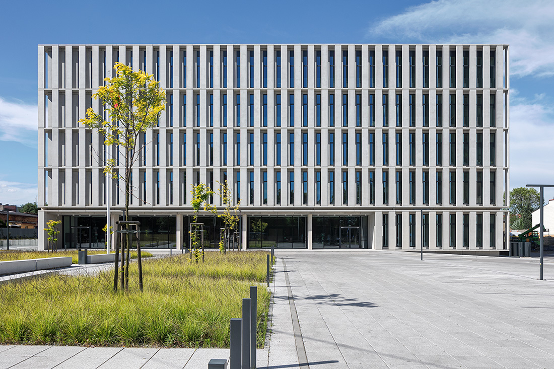 Sąd w Częstochowie nie jest jedynym obiektem wymiaru sprawiedliwości, jaki powstał w pracowni Heinle, Wischer und Partner Architekci. Na podstawie projektu zwycięskiego w konkursie z 2023 r. powstaje siedziba sądu i prokuratury w Końskich. W sierpniu br. do nowej siedziby, oddanej cztery miesiące przed terminem, przeprowadził się Sąd Rejonowy w Sosnowcu, którego projekt także został oparty o pewną modularność i układ kręgów-pierścieni. Wrocławskie biuro jest jedynym zagranicznym oddziałem firmy (pozostałe cztery filie mają siedziby w Niemczech). Od początku działalności w Polsce (2008 rok) firmę prowadzi arch. Anna Stryszewska-Słońska, która kształciła się w Dreźnie i kilka lat pracowała w Niemczech. Heinle, Wischer und Partner Architekci bardzo dobrze odnajduje się w projektach budynków badawczych, dydaktycznych, centrów nauki, sądów – tam, gdzie ważną częścią zadania jest złożona wewnętrzna struktura (obecnie w realizacji znajduje się, wyłoniony w konkursie, budynek Wydziału Informatyki Zachodniopomorskiego Uniwersytetu Technologicznego w Szczecinie, z betonem na elewacjach). Architektka tłumaczy, że jest to efekt długiego trwania i przekazywania doświadczeń. Firma działa na niemieckim rynku już kilkadziesiąt lat. Od lat 60. biuro specjalizowało się w obiektach szpitali i laboratoriów, przyswajając sobie idee i pomysły, które rodziły się właśnie wtedy, a dotyczyły funkcjonowania obiektów o skomplikowanej strukturze wewnętrznej. Początki działalności biura w Polsce to konkursowe realizacje dla Politechniki Wrocławskiej i Akademii Medycznej we Wrocławiu. Anna Stryszewska-Słońska: – Moje rozumienie architektury ma źródło w koncepcjach, jakie robiłam jeszcze w Niemczech. Pracując tam, nauczyłam się kwestii organizacji budynku, intuicyjności, uporządkowanej struktury i czytelności komunikacji; zasady te staramy się implementować we wszystkich naszych projektach. Najważniejsze jest mieć czytelną koncepcję, czyli myśl. Nie wolno tej myśli zatracić przez cały proces projektowy, a potem trzeba jej bronić przez cały proces realizacji.